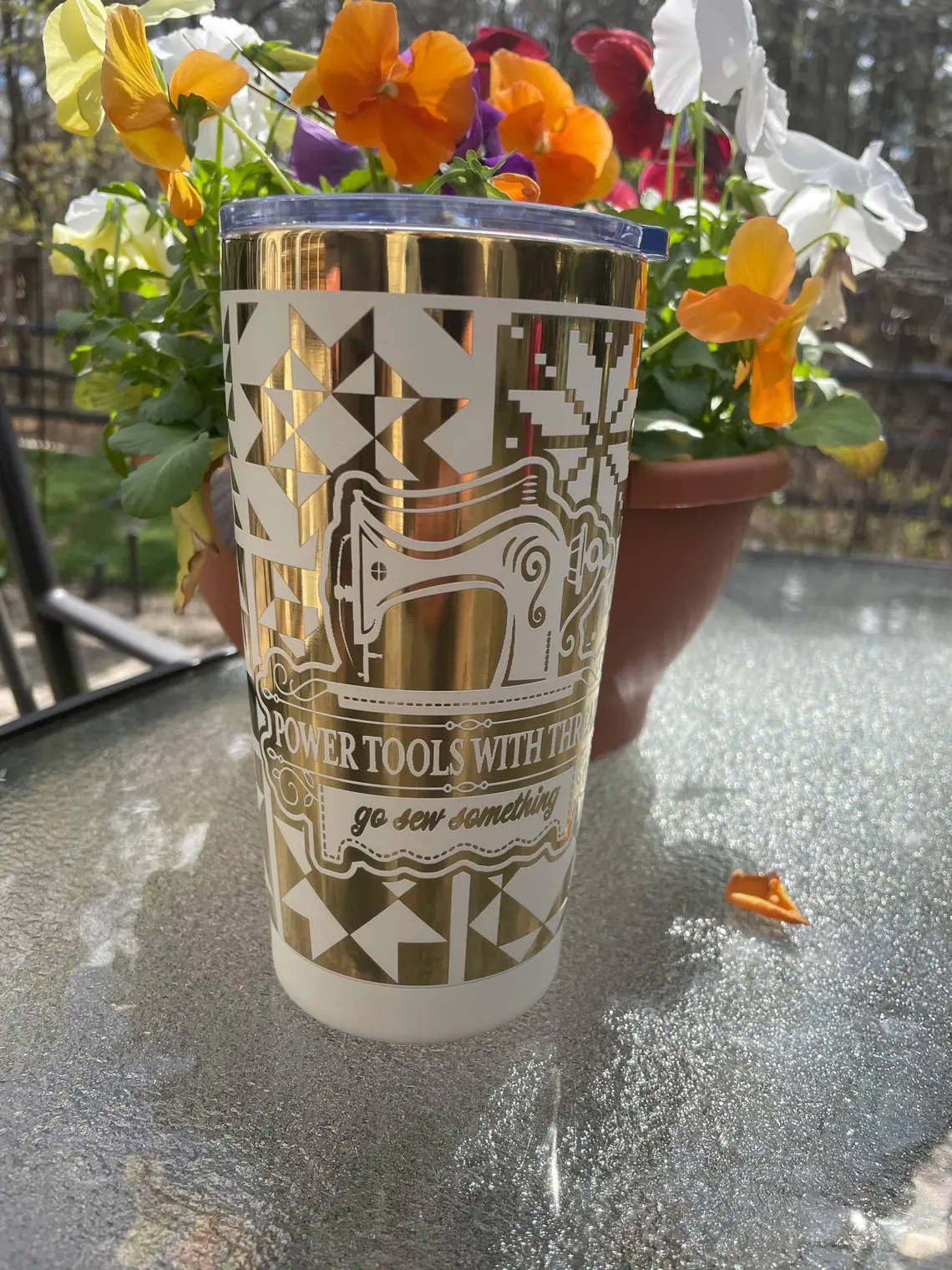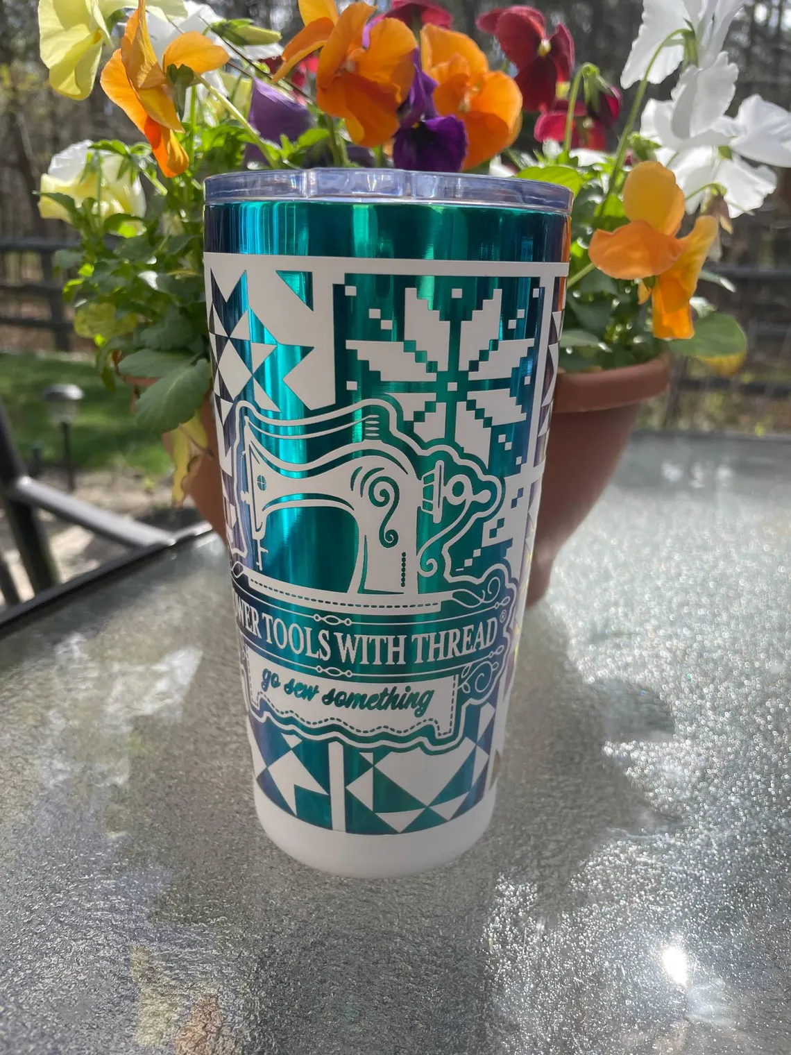Fuel your next sewing session with this 20oz “Go Sew Something” tumbler — made for sewists, quilters, and crafty creators who thrive on thread, fabric, and caffeine. Wrapped in a detailed spool-and-thread design, this stainless steel tumbler keeps your favorite drinks hot or cold while you stitch away.