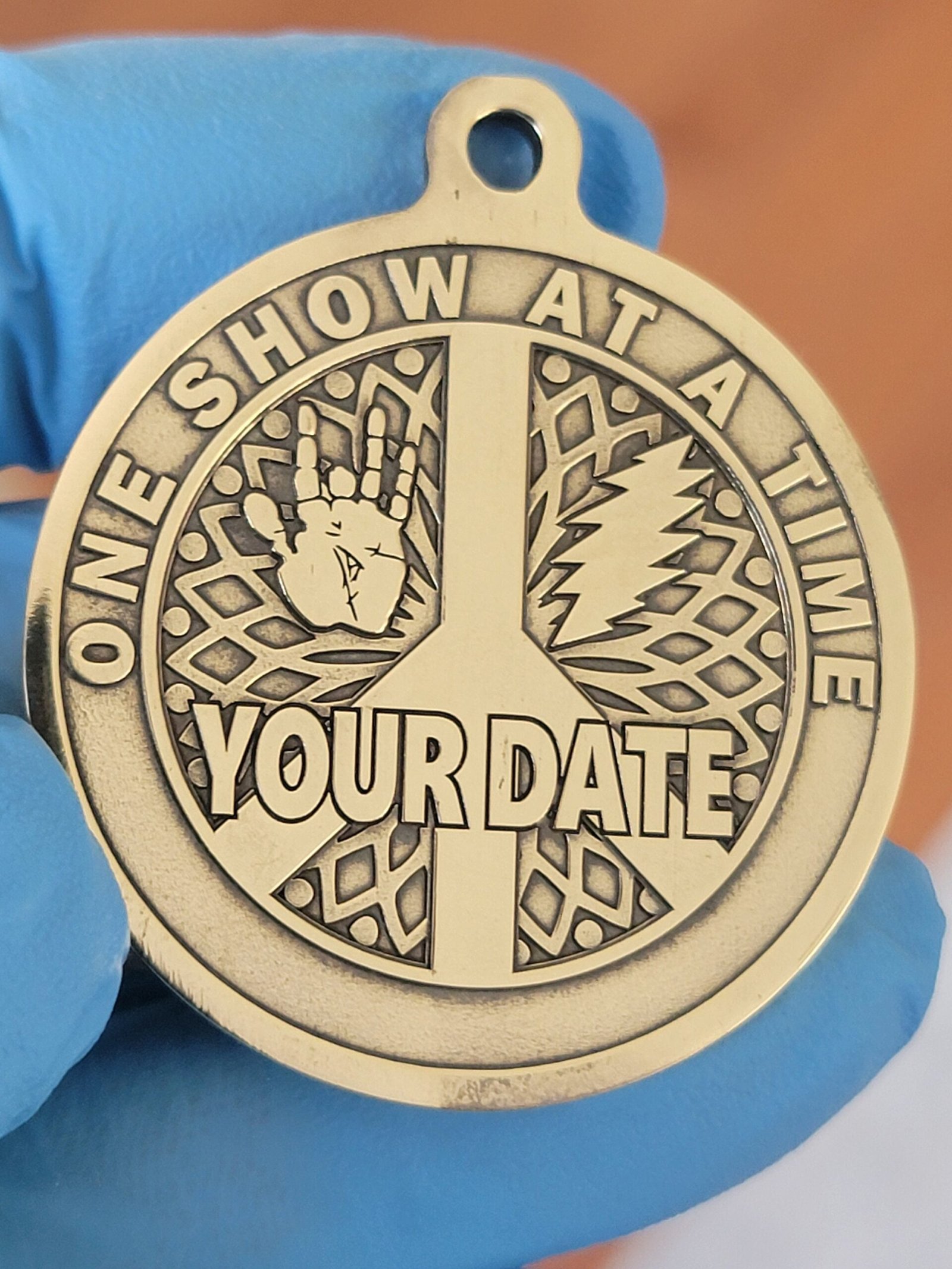 Stealie AA recovery anniversary coin. Please complete personalization section.