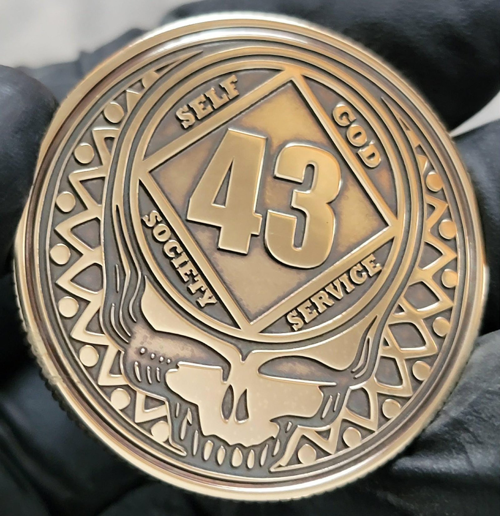 Grateful Dead NA Ripple Recovery Anniversary Coin WITH years on front AND Anniversary Date On Back Please Include The Number Of Years AND Anniversary Date In The Personalization Section. 40mm x 3mm Solid Brass Includes Coin Capsule And Cloth Carry Bag