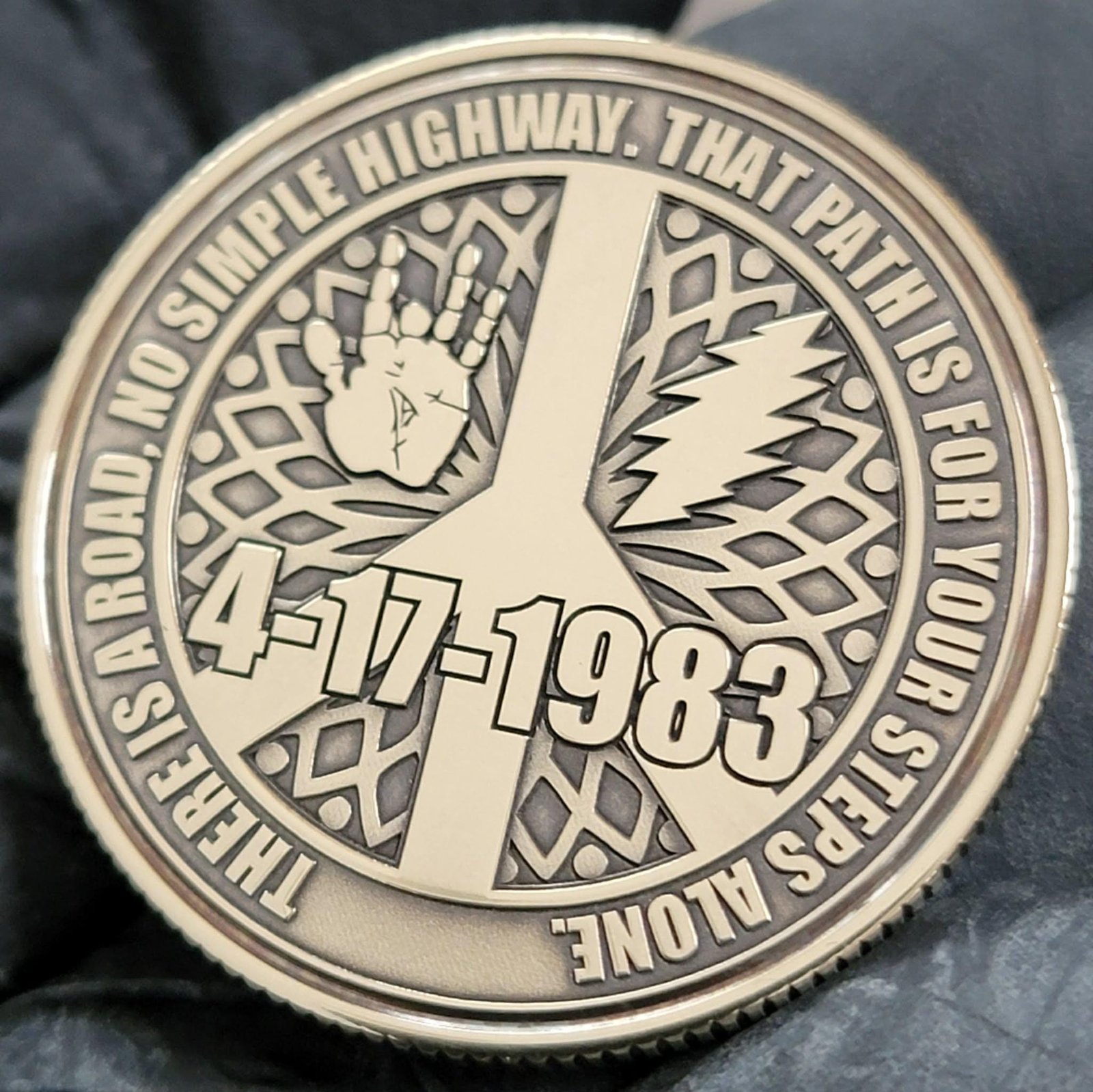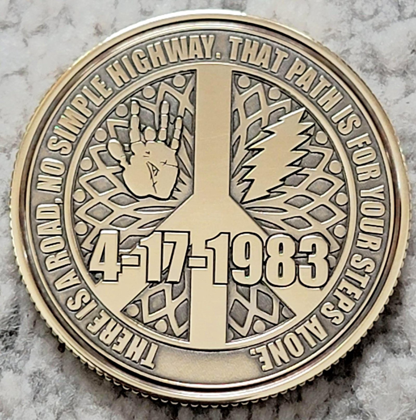 Grateful Dead NA Ripple Recovery Anniversary Coin WITH years on front AND Anniversary Date On Back