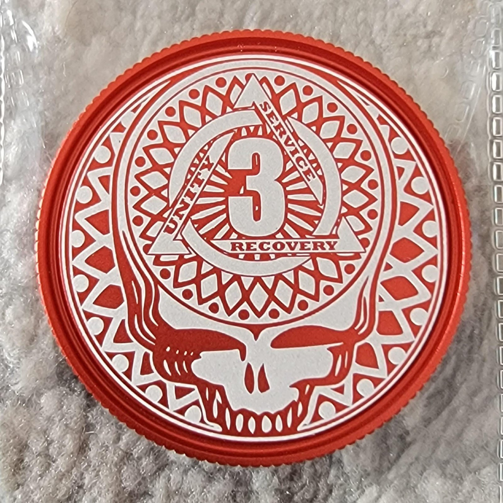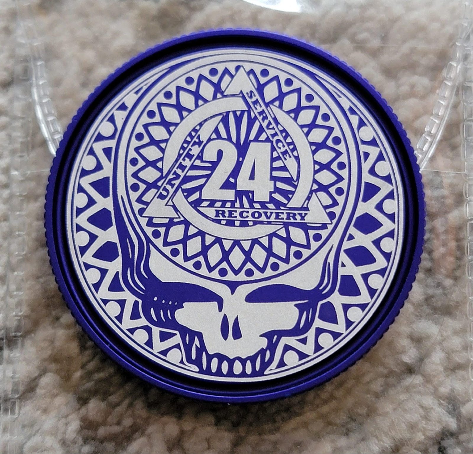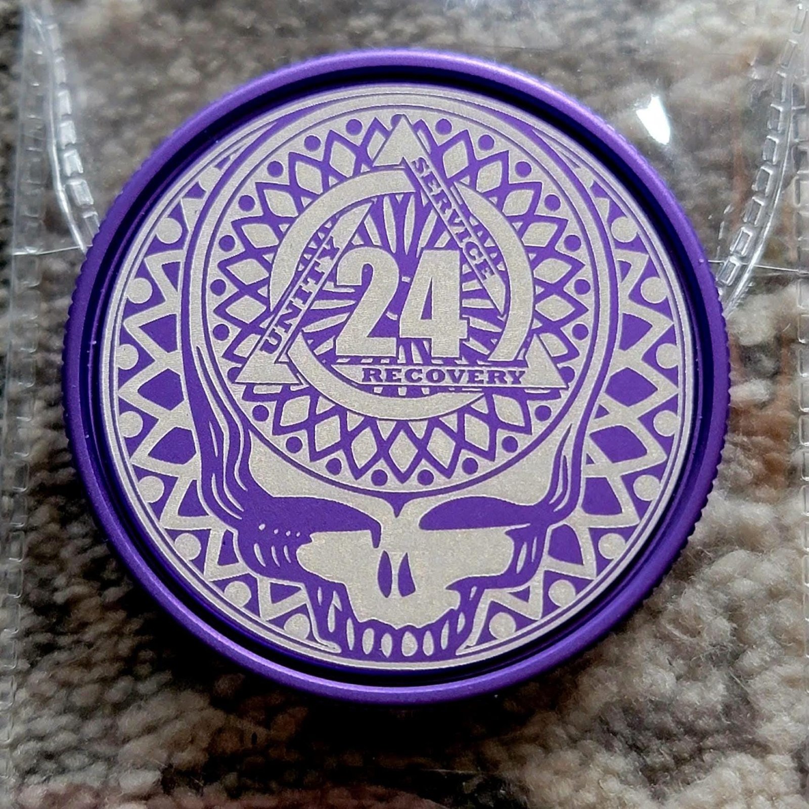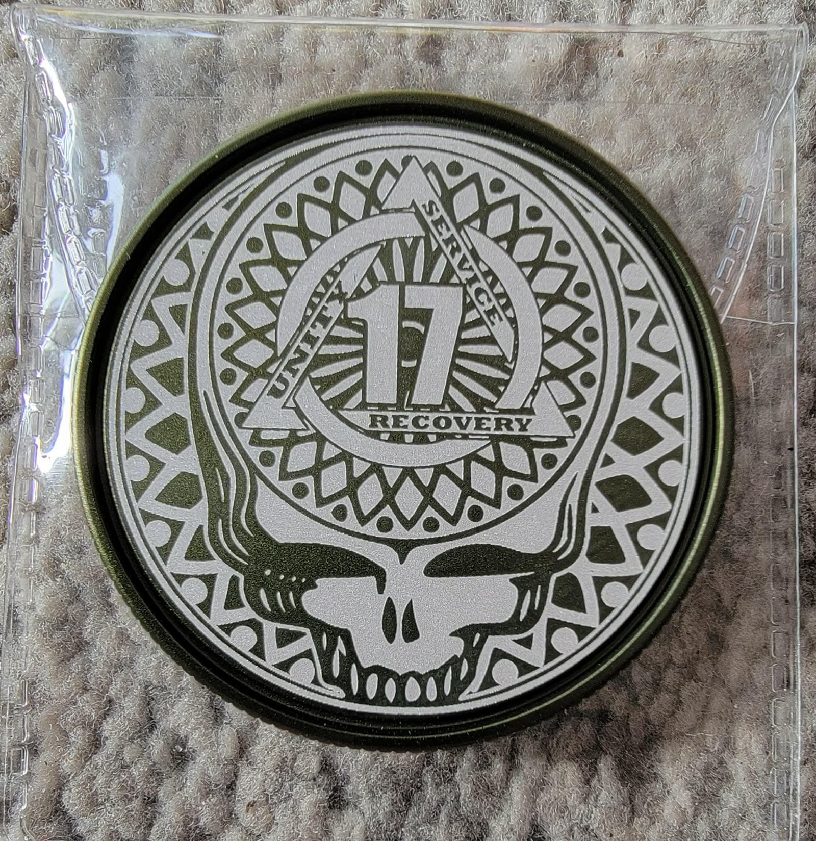 40mm x 3mm Personalized Lightweight Anodized Aluminum Terrapin Station Grateful Dead Recovery Anniversary Medallion. Comes With Plastic Coin Pouch, Protective Coin Capsule And Cloth Carry Bag. Each Color Engraves To White. Updated Pictures of Completed coins Will Be Added As The Coins Are Made. *Please note that due to the manufacturing and photography processes, there might be slight variances in color* PLEASE INCLUDE THE NUMBER OF YEARS SOBER AND ANNIVERSARY DATE IN PERSONALIZATION SECTION. Ex: 9Y 11/11/2016 Please Message For Any Customization. There May Be A Small Upcharge. Thank You!