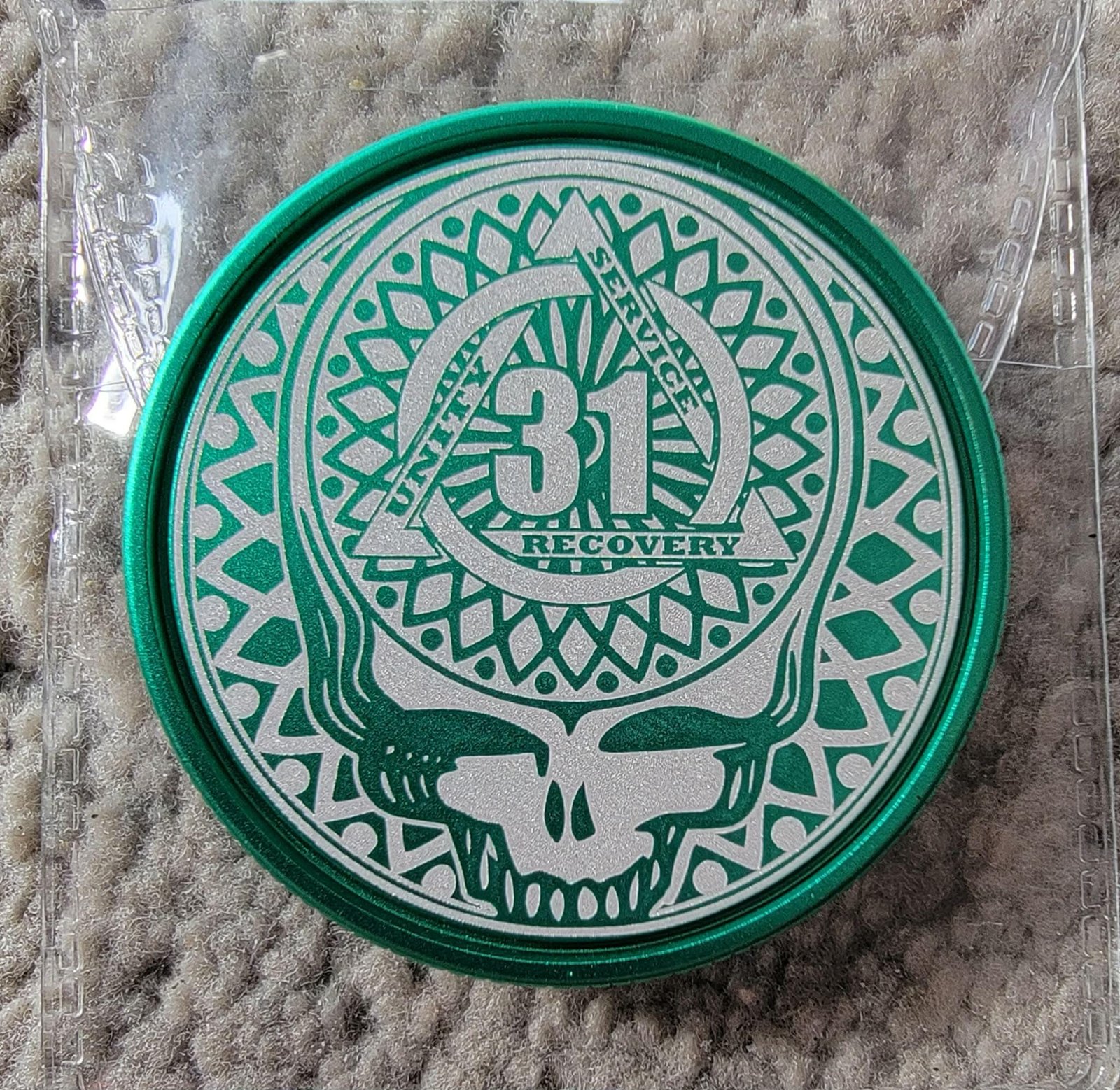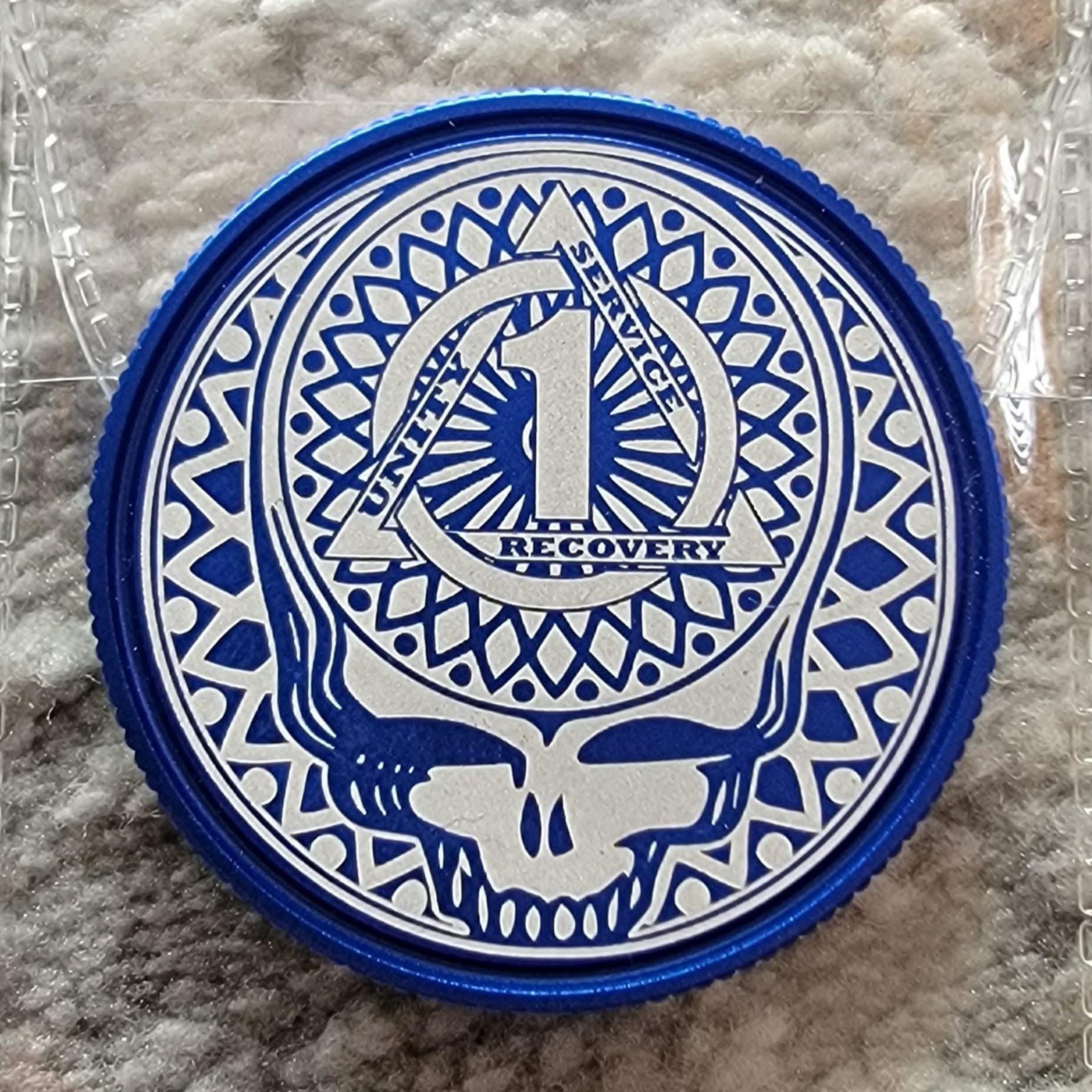 40mm x 3mm Personalized Lightweight Anodized Aluminum Terrapin Station Grateful Dead Recovery Anniversary Medallion.